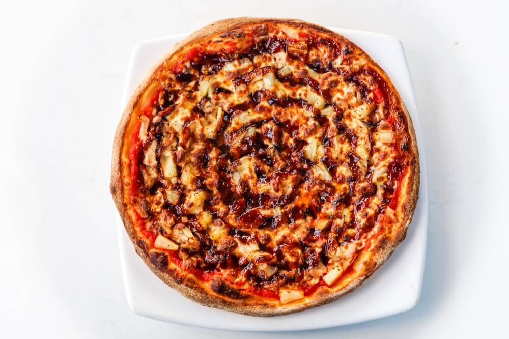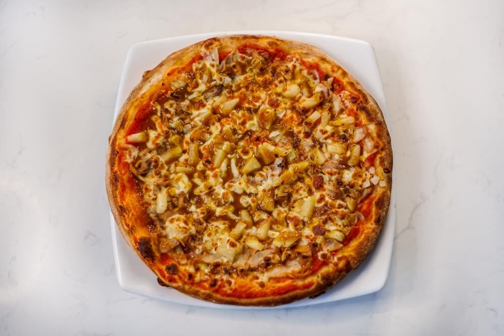 Napoli Sauce, Mozzarella cheese, Chicken, Pineapple, BBQ Sauce