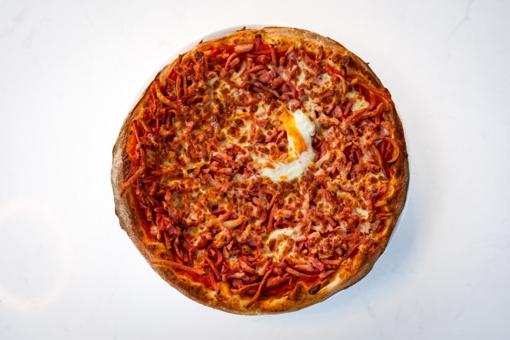 Napoli sauce, Mozzarella Cheese, Ham, Bacon, Egg