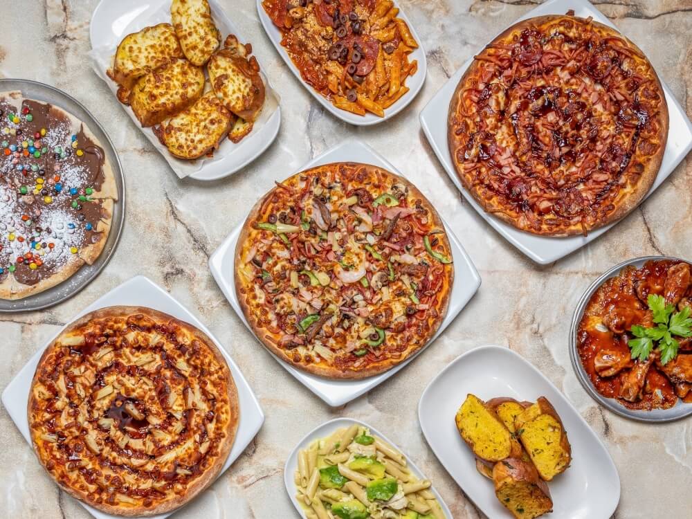 2x Large Traditional Range Pizza, 1x Main Pasta, Garlic Bread & 1.25L Softdrink