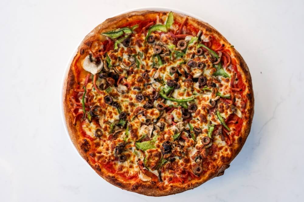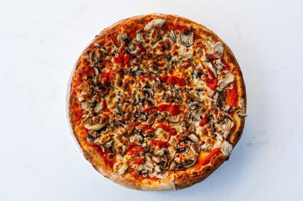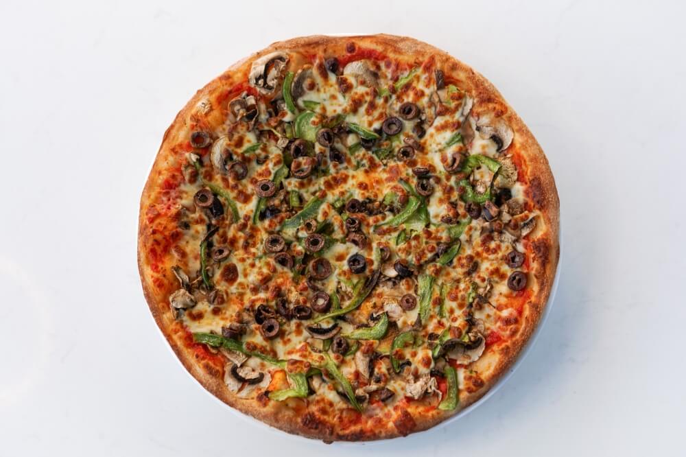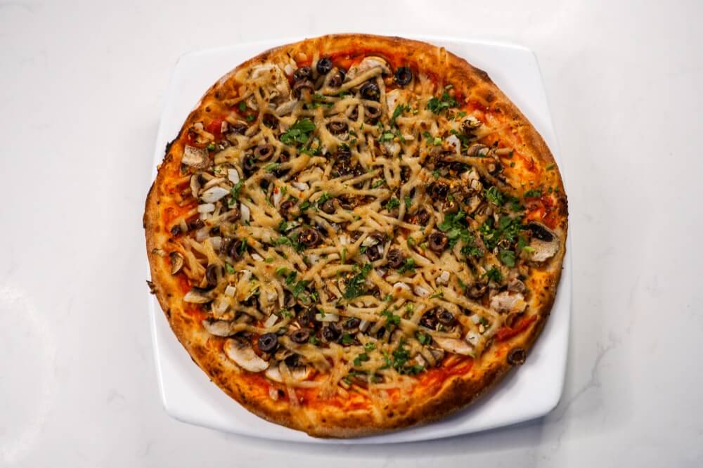 Napoli Sauce, Vegan Cheese, Mushroom, Olives, Onion, Chilli & Garlic
