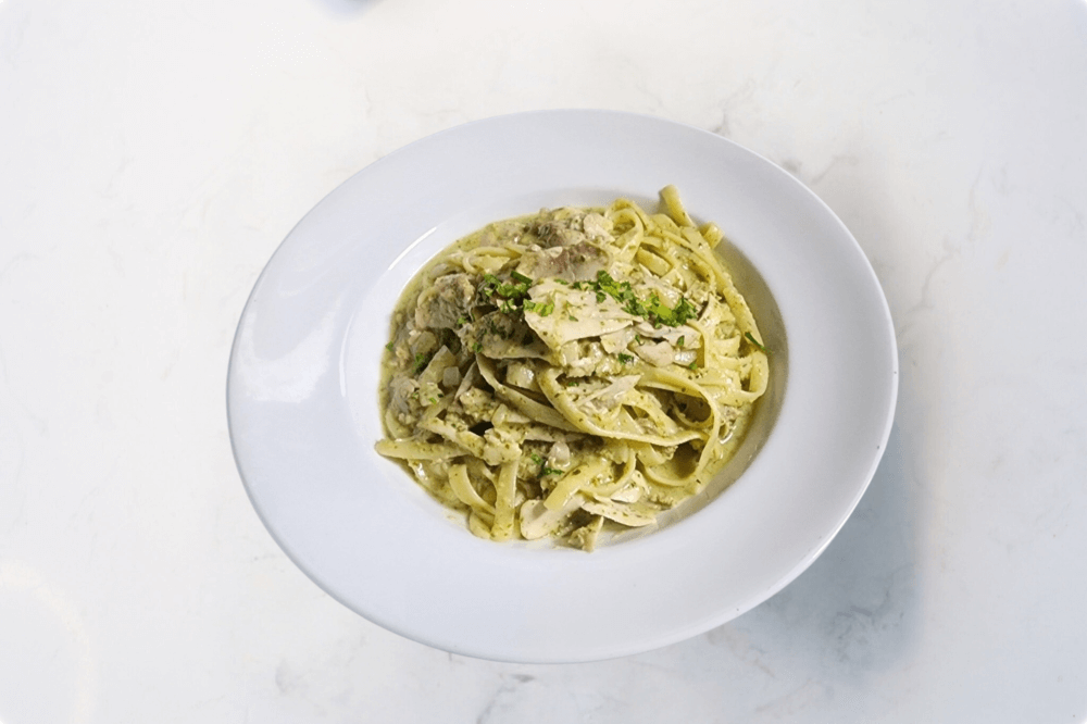 Chicken, Onion, Pesto & Cream