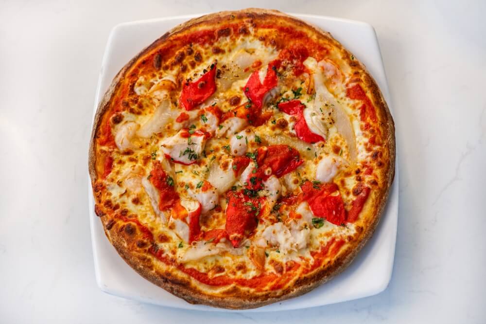Napoli sauce, Mozzarella cheese, Fish, Crab Stick, Prawns, Garlic, Fresh Parsley