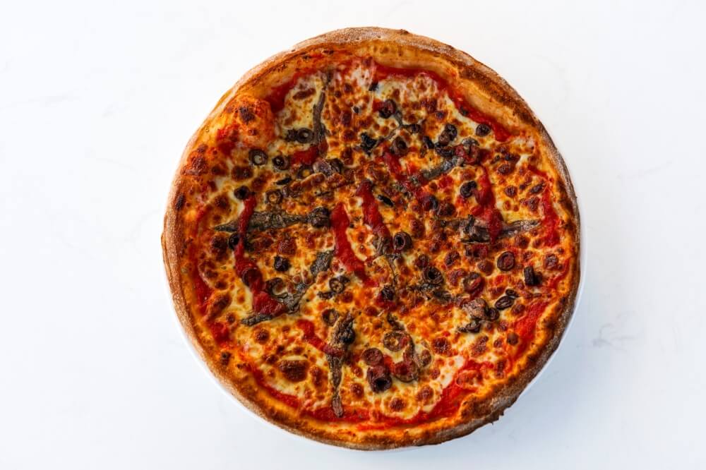 Napoli sauce, Mozzarella cheese, Olives, Anchovies, Oregano