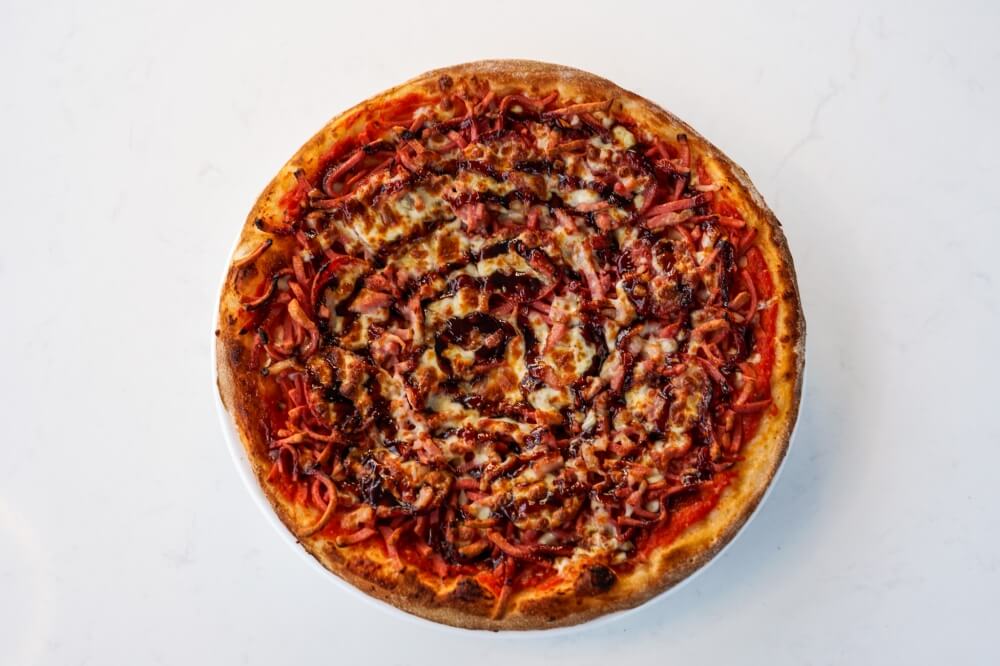 Napoli Sauce, Mozzarella cheese, Ham, Salami, Bacon, BBQ Sauce
