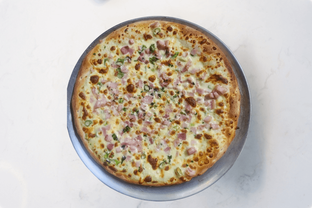 Dash Of Cream, Mozzarella Cheese, Bacon, Spring Onion, Garlic