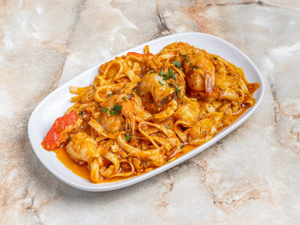 Fish, Crab, Prawns, Fresh Parsley in a Cream, Napoli or Pink Sauce
