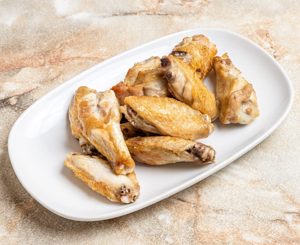 10 Oven roasted chicken wings with your choice of flavour Plain, BBQ Sauce or Satay