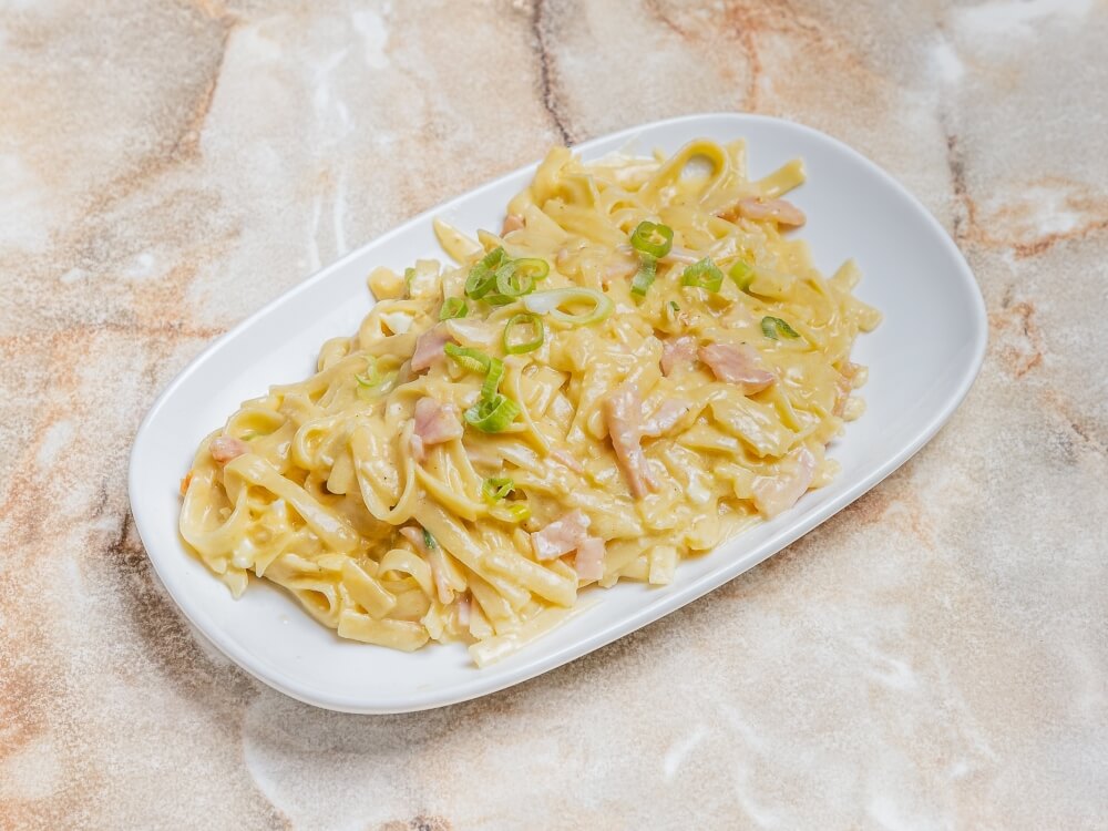 Bacon, Shallots, Egg yolk in Cream