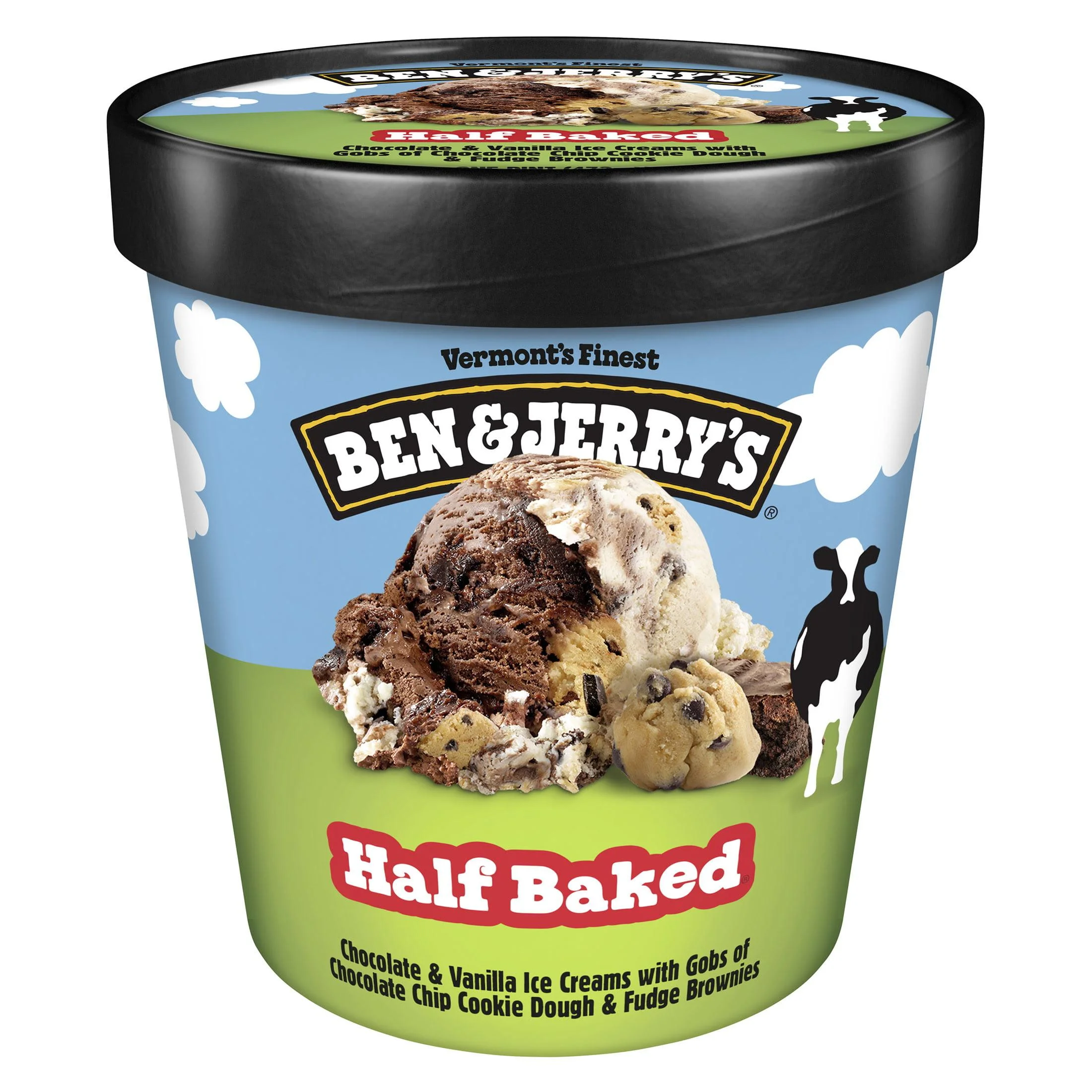A delectable dance of Chocolate Chip Cookie Dough and Chocolate Fudge Brownie. You might say that’s wacky. We say it’s Half Baked!