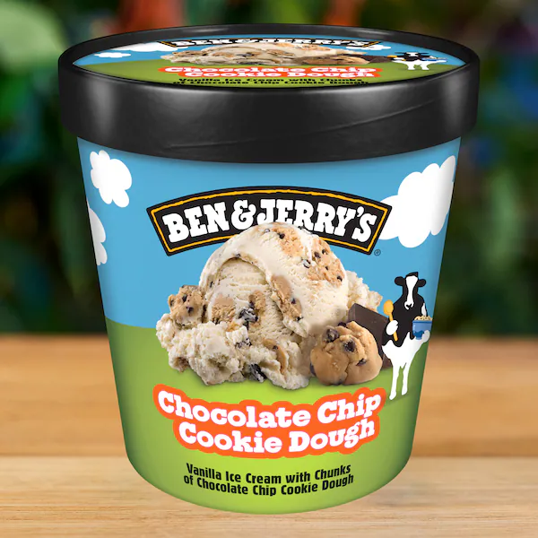 Ben & Jerry's Chocolate Chip Cookie Dough Ice Cream Tub has deliciously big chunks of chocolate chip cookie dough surrounded by creamy vanilla ice cream.