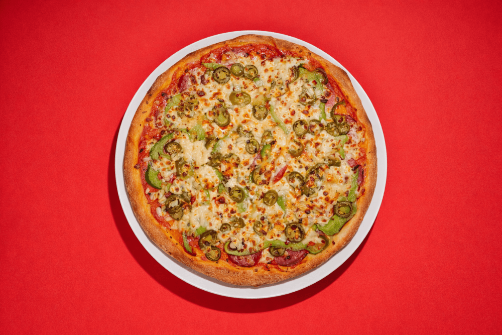 Napoli Sauce, Mozzarella Cheese, Salami, Capsicum, Jalapenos, Onions, Chilli, Garlic